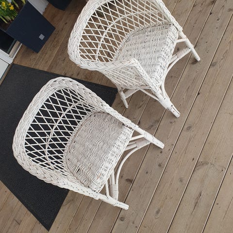 IKEA barnstol i rotting i vit färg. Stolen har rundad rygg och sits med lös rund dyna. Passar som sittplats för barn i barnrum, vid bord eller i andra inomhusmiljöer. Utförd i flätad rotting med lätt konstruktion som är enkel att flytta vid behov. En vanlig stol som storleksreferens ingår ej.