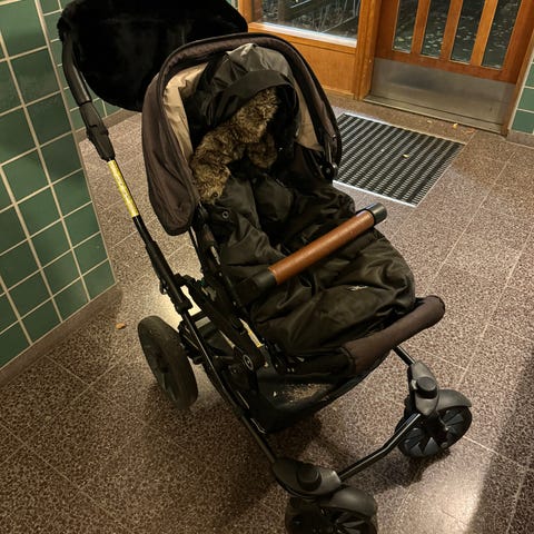 Skickar med sommarsuflett inkl myggnät, åkpåse, barnvagnsvantar, regnskydd, extra solskydd för liggdelen, krokar och sittdyna.
