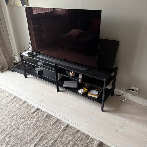 Säljer två stycken FJÄLLBO TV-bänkar från IKEA i svart, stilrena och praktiska med bra förvaringsytor.