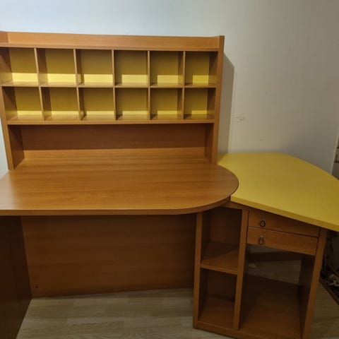 Hörndatorbord träfanér med överdel och förvaring