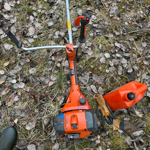 Begagnad Huskvarna 545FXT röjsåg med handtagsvärme. Bra bruksskick. Ny klinga.