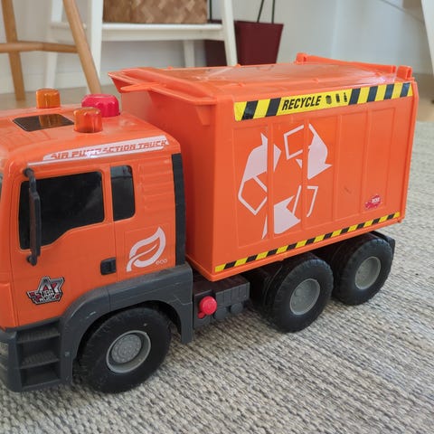 Leksaksfordon, gul truck.