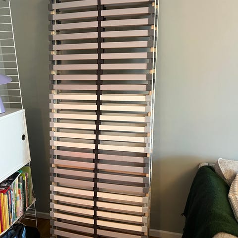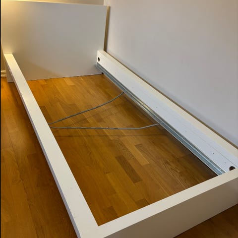 IKEA Malvik resårmadrass tillsammans med IKEA Lönset ribbotten. Madrassen är vit med avtagbart överdrag. Sparsamt använd (ca 5-10 gånger) skydd alltid använts och nytvätttad till köpare. Madrass och ribbotten säljs tillsammans som komplett liggdel till säng.