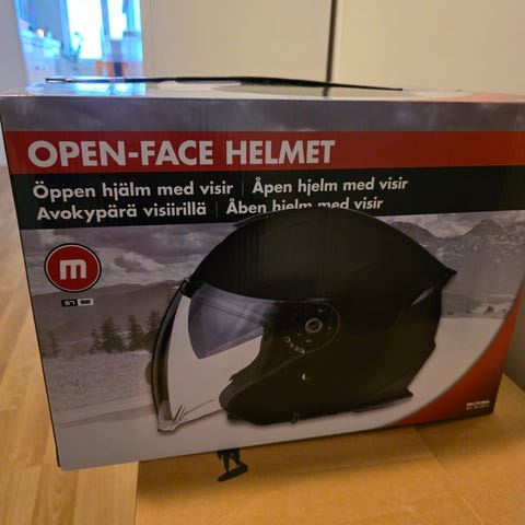 Säljer en smidig och funktionell öppen hjälm (jethjälm) i mattsvart utförande. Perfekt för dig som kör moped, scooter eller MC och vill ha god sikt och ventilation.