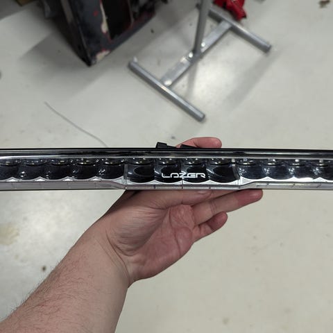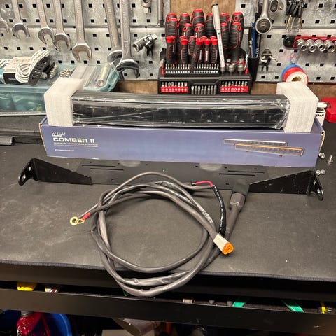 Rampen är 32” lång och böjd så den följer fronten.Har varit monterad en vecka på frugans bil men den var för lång,skymde parkeringssensorer så det gick inte därför säljs den.