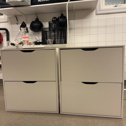 Praktiskt och stilrent skåp för förvaring av skor i hallen.