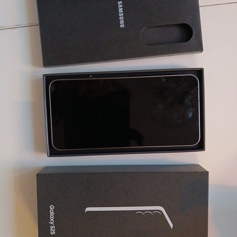 Telefonen är oanvänd och levereras med originalkartong, laddkabel och SIM-kortsverktyg enligt bilderna.