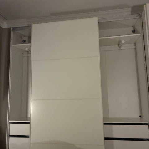 Garderoben är redan nedmonterad och klar att hämtas, vilket gör transporten enkel.