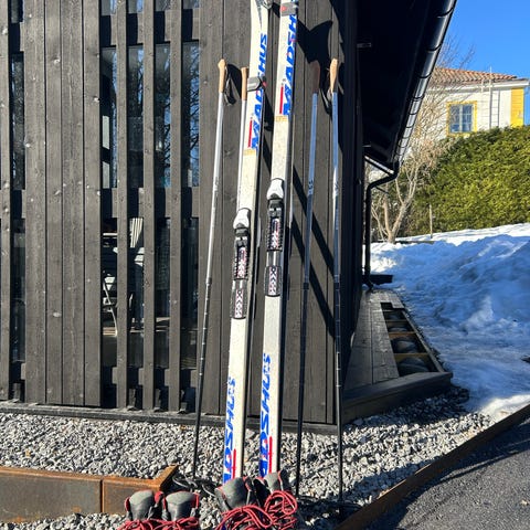 Skidorna och stavarna finns i Nynäshamn för avhämtning.