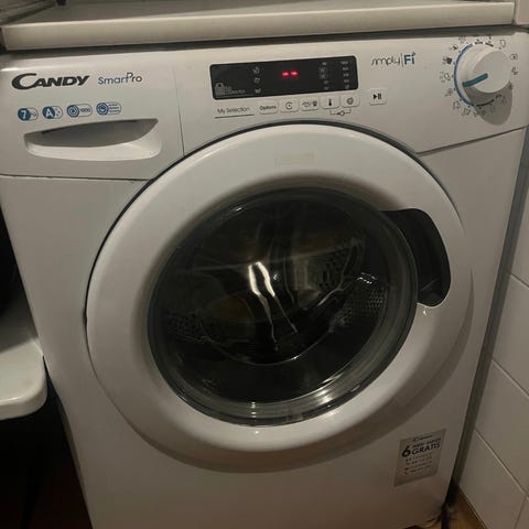 Candy frontmatad tvättmaskin i vit färg. Haft den i några år men sparsamt använd då vi hade den i sommarstugan.