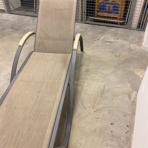 Vit/grå solsäng från Jysk använd två sommrar. Det finns spår av att ha stått ute, men är hel och fungerar som den skall. I fint bruksskick.