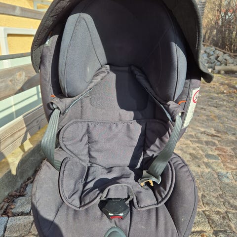 Nu har barnbarnen vuxit och vi behöver inte längre denna bakåtvända bilbarnstol. Vi övertog den av våra före detta grannar och vi har använt den sparsamt sedan 2021. Passar för barn med längd 51-105 cm, max 18 kg (ca 6 månader till 4 år). Montering med ISOfix. Hållar som håller ihop säkerhetsbältet på framsidan ingår. Komplett med instruktionsbok. Klädseln är nytvättad.