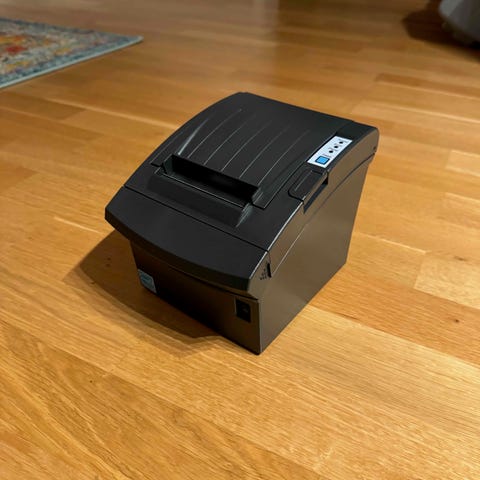 Star TSP700II kvittoskrivare med termisk utskriftsteknik i svart utförande. Skrivaren är avsedd för utskrift av kvitton, etiketter eller liknande rullpapper. På baksidan finns anslutningar för ström, kommunikationskabel och kringutrustning. Passar för användning i exempelvis butik, restaurang eller annan kassamiljö där snabb kvittoutskrift behövs.