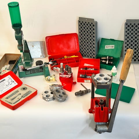 Hornady laddkit. Allt som följer med i orginalkitet. Bra skick, liten spricka på plasten till krutdoseraren men inget som påverkar funktionen. Vågen är aldrig använd.