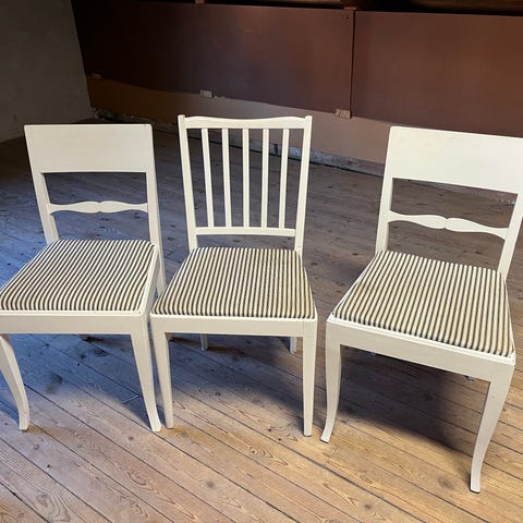 3 stycken likadana stolar, om man bortser från att ingen är samma färg som dom andra.