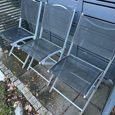 2 st Fällbara stolar i svart metall/aluminium med sits och ryggstöd i nätväv/slitstarkt textil.
