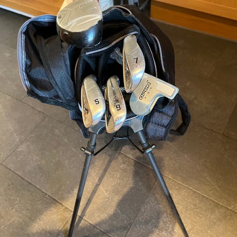 4D Golfset med bärbag för barn i blått och svart. Setet innehåller 4 klubbor samt en lätt bärbag med bärsele och utfällbara benstativ. Passar för yngre spelare som behöver ett komplett enklare set för träning eller spel på bana. Färgkombination i huvudsak blå och svart med vissa detaljer i andra färger.