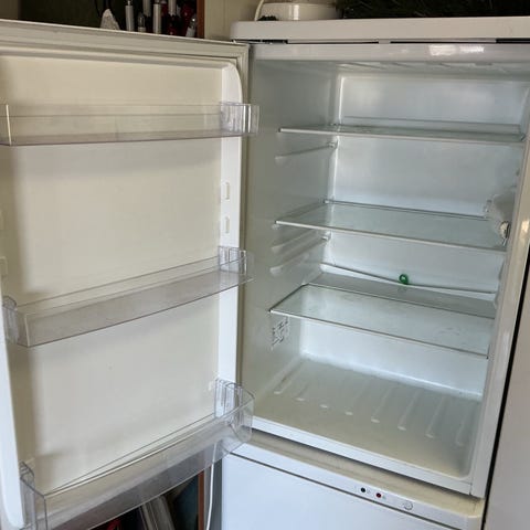 Electrolux kylskåp i fristående utförande. Skåpet är vitt och har en dörr med handtag på sidan. Invändigt finns flera hyllplan och lådor för förvaring av matvaror. Passar för användning i kök, förråd eller som extra kylförvaring i exempelvis sommarstuga eller garage.