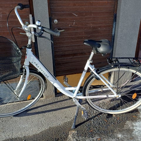 Säljer en fin damcykel i fint skick. Den är 3 år gammal. Cykeln är enväxlad, rejäl, har handbroms. Låset är original Axa-lås med två nycklar.