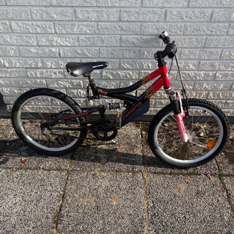 Röd 20” barncykel i fint använt skick, använd sparsamt i två somrar.