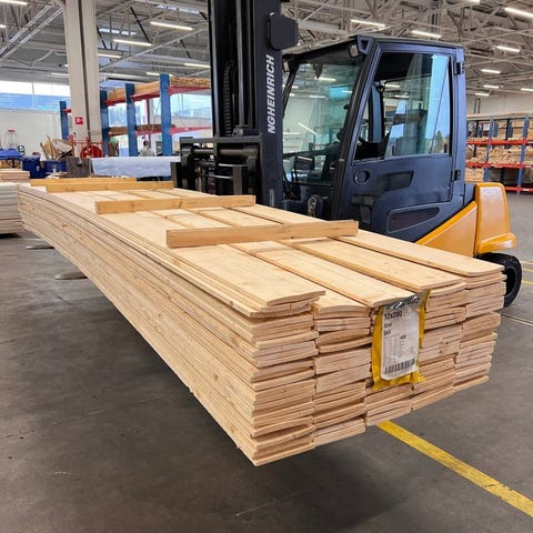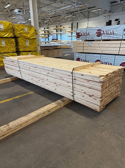 Paketet har blivit blött på grund av hål i plasten men är läktat, ej mögligt och kommer torka inom ett par veckor till någon månad.Brädorna är i prima skick förutom fukten och blir helt användbara efter torkning.Naturliga variationer i kvalitet kan förekomma.