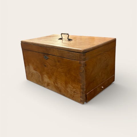Gammaldags allmoge smörkärna i trä. Cylindrisk behållare med handtag och kolv upptill. Passar som bruksföremål för traditionell smörtillverkning eller som dekorativ inredningsdetalj i exempelvis kök, torp eller lantlig miljö. Träet har en åldrad patina som ger ett rustikt utseende.