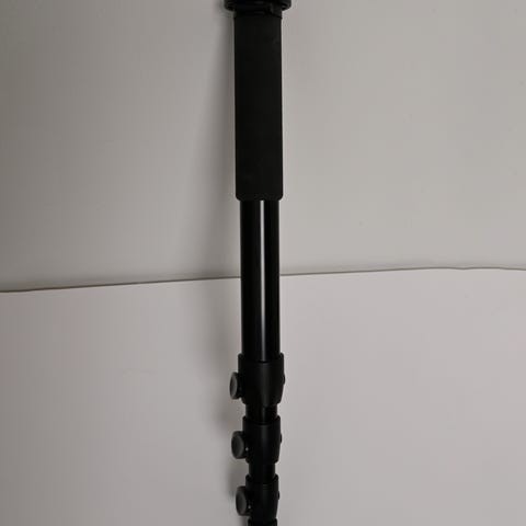 Manfrotto #075B kamerastativ i svart. Stativet är tillverkat i Italien och har en robust konstruktion. Det är utrustat med en vev för att justera höjden på mittpelaren. Benen är justerbara och kan fällas ut för stabilitet. Stativet fungerar perfekt,