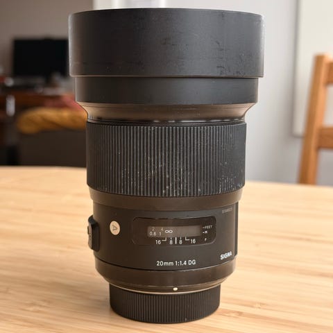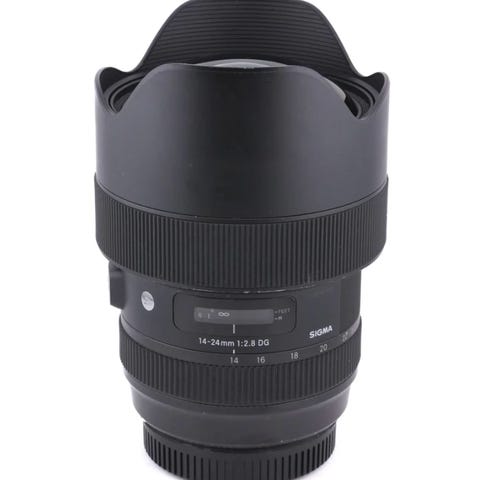 Fast vidvinkelobjektiv med brännvidd 24 mm och största bländare f/1.4. Tillhör Sigmas Art-serie med DG-konstruktion och HSM-motor för autofokus. Objektivet har inbyggt motljusskydd, liten spricka i motljusskyddet, se bild och levereras med fram- och baklock enligt bilderna. Passar systemkameror med kompatibelt bajonettfäste (se kamerahus för rätt fattning). Lämpligt för exempelvis landskap, reportage och fotografering i svagt ljus.