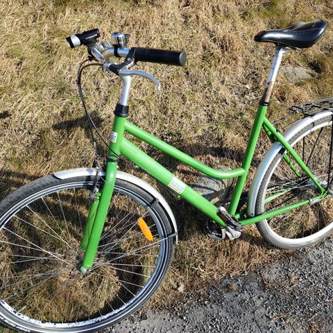 Cykeln rullar bra och är robust byggd. Normalt bruksskick med mindre märken efter ålder. Säljs i befintlig skick