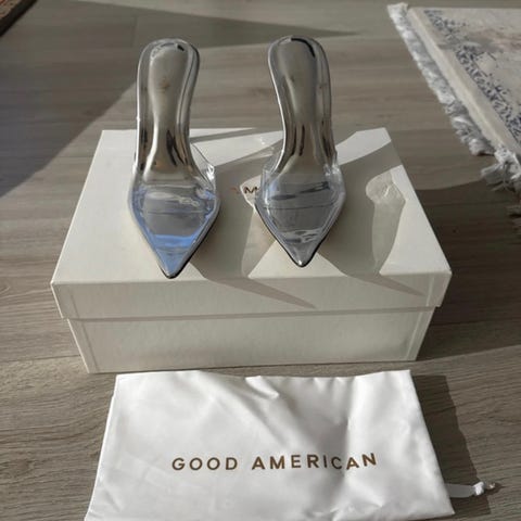 Säljer ett par super snygga klackar från märket Good American som skapades av Khloe Kardashian.
