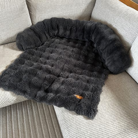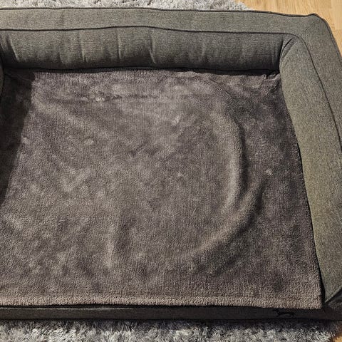 Säljer grå hundbädd då hunden inte gillar den, hon har legat på den 1-2 ggr. Annars har den lagts undan i garderoben.