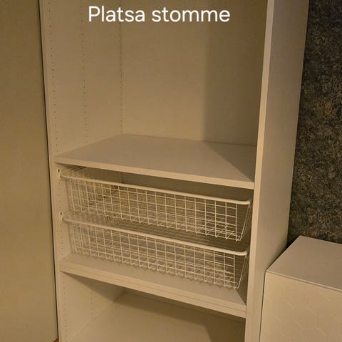 180 cm hög, 80 cm bred och 60 cm djup. Lätt sliten med 4 hyllplan (bara 3 på bilden men finns ett till). Säljes pga va flytt.