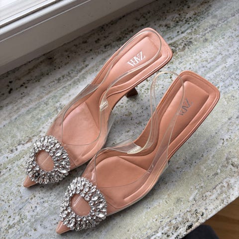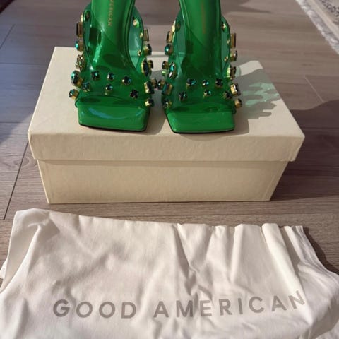 Säljer ett par super snygga klackar från märket Good American som skapades av Khloe Kardashian.