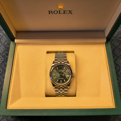 Säljer min nästan nya Rolex Datejust 36mm med Wimbledon-tavla och Jubilee-länk. Klockan är använd enstaka gånger och är i mycket gott skick. Fullset med alla originalhandlingar och box. Rolex-garantin gäller till december 2030, vilket ger trygghet vid köp.