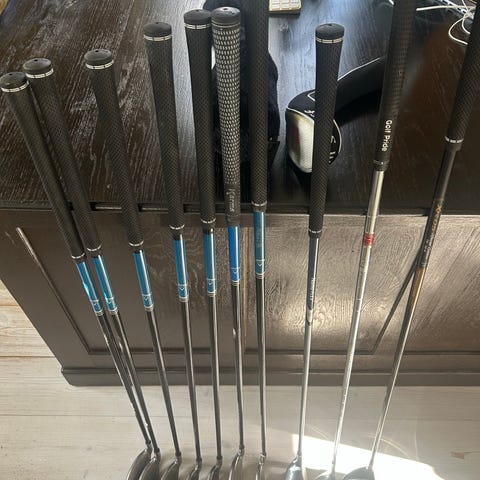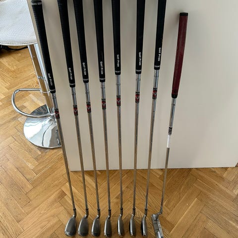 Driver 10,5gr, 5w 19gr, 5H 23 gr, J6-SW samt putter. Alla skaft i regular.