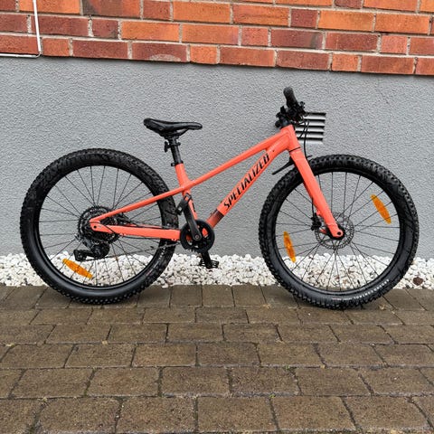 Specialized barncykel med 24" hjul. Cykeln har grovmönstrade däck anpassade för blandad körning på grus och asfalt. Utrustad med utanpåliggande växlar och vridreglage på styret med 7 växlar. Ram i metall med sportig geometri, fotstöd och reflexer på hjulen. Passar barn som behöver en något större cykel för vardagscykling och fritidsbruk.
