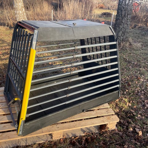Säljer nu våran Mim hundbur i XL utförande. Har suttit i en volvo v70 men passar de flesta kombin som tex, passat, skoda octavia/ superb/ saab 95, audi a6 mm. Låsbar med tillhörande nycklar. Fyra monteringsremmar för att buren skall sitta säkert fast i bagaget.