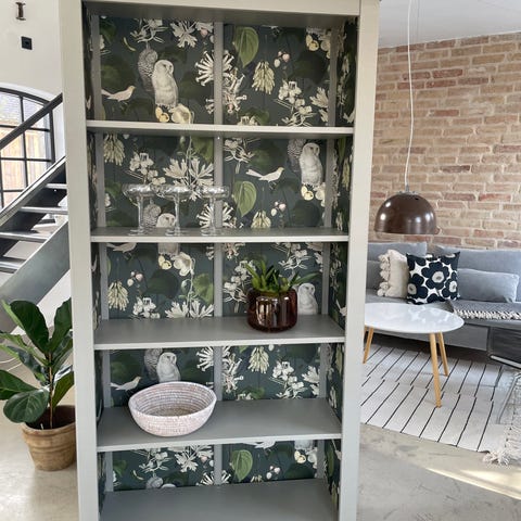 Gammal apotekshylla 1930-tal, vi har använt som vinskåp.