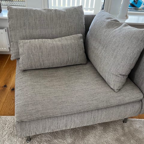 Tre moduler som är ihopsatta enbart med tving, dvs inga hål mer än vid armstöden så de går att ställa hur man vill.