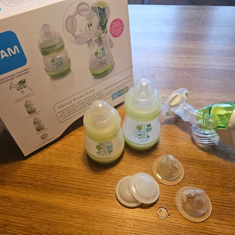 MAM Move elektrisk bröstpump med nappflaska och vissa tillbehör