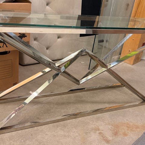 2 Runt sidobord i metall med spegelglas som bordsskiva och stativ i guldfärg. Bordet har smala ben med kryss-stativ för stabilitet. Passar som avlastningsbord eller soffbord i vardagsrum, sovrum eller hall. Säljes som två likadana bord enligt bilderna. Båda två 300 kr
