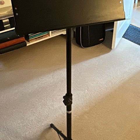 Noterat notställ hopfällbart i metall i två utföranden, ett svart och ett silverfärgat. Båda notställen är höj- och sänkbara med teleskopben och har tre ben för stabilitet. Det svarta notstället har en större, fast nothylla medan det silverfärgade har en klassisk, vikbar nothållare. Lämpliga för användning vid övning, repetition och framträdanden för olika typer av musiker och instrument. Svart Hamilton. Silver inte. Hamilton saknar en bit , se på bild