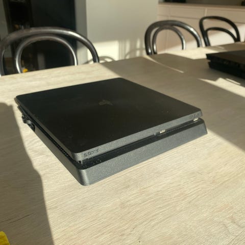 PlayStation 4 i fint skick. Konsolen är välskött och ser nästan ut som ny. Den har inga repor, sprickor eller andra synliga märken på ytan. Alla portar och knappar är hela och rena. Har stått på en säker plats i ett rökfritt hem och har behandlats mycket varsamt.