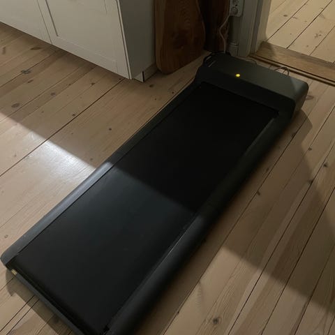 Löpbandsmaskin för inomhusbruk. Kompakt modell som placeras direkt på golvet och lämpar sig för gång eller lättare löpning i hemmet. Utrustad med löpmatta och elanslutning. Passar för träning inomhus när väder eller utrymme begränsar möjligheten till utomhusmotion.