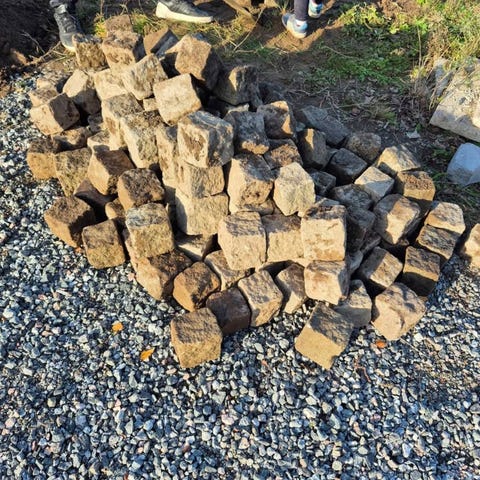 Natursten i olika storlekar, finns 50-60 st.