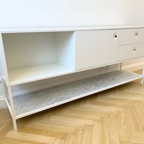 Sideboard/hylla i glas och travertin