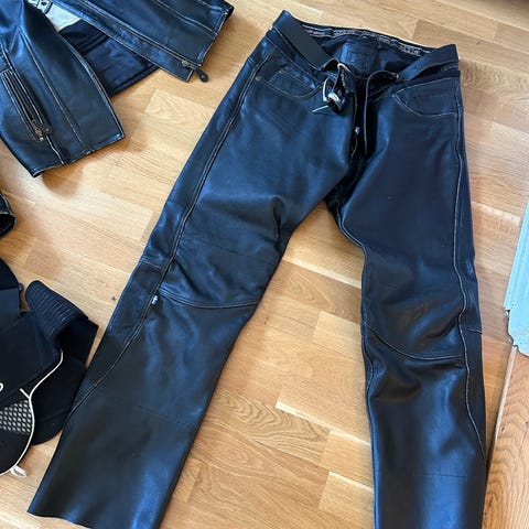 Säljer ett komplett MC-ställ i skinn från Corax (jacka + byxor) samt ryggskydd.