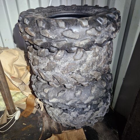 Mindre gummidäck med fälg och även massiva däck bortskänkes mot avhämtning