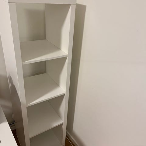 Hylla med 4 luckor som man kan placera som man vill. Hyllan kan både vara stående och liggande. Hylla är i mycket fint skick.