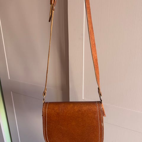 Coach axelremsväska för kvinna i brunt läder. Väskan har justerbar axelrem och klaff med magnetknäppning. Invändigt finns ett huvudfack samt ett mindre fack med dragkedja. Väskan är tillverkad i naturfärgat fullnarvsläder med präglad Coach-märkning på insidan och lädertaggar vid remfästet. Passar för vardagsbruk med plats för mindre personliga tillhörigheter som plånbok, mobil och nycklar.